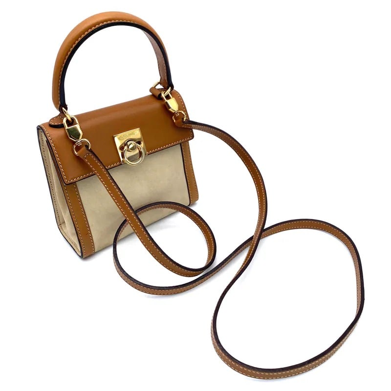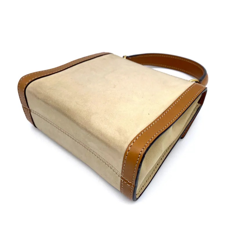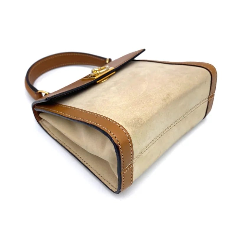 Ranking : B Colour : Beige X Brown Size : W13 X H12 X D5.5 cm Handle Drop : 7 cm Strap Length : 115 cm Material : Suede X Leather Remark : Outside scratches and wears, Inside scratches