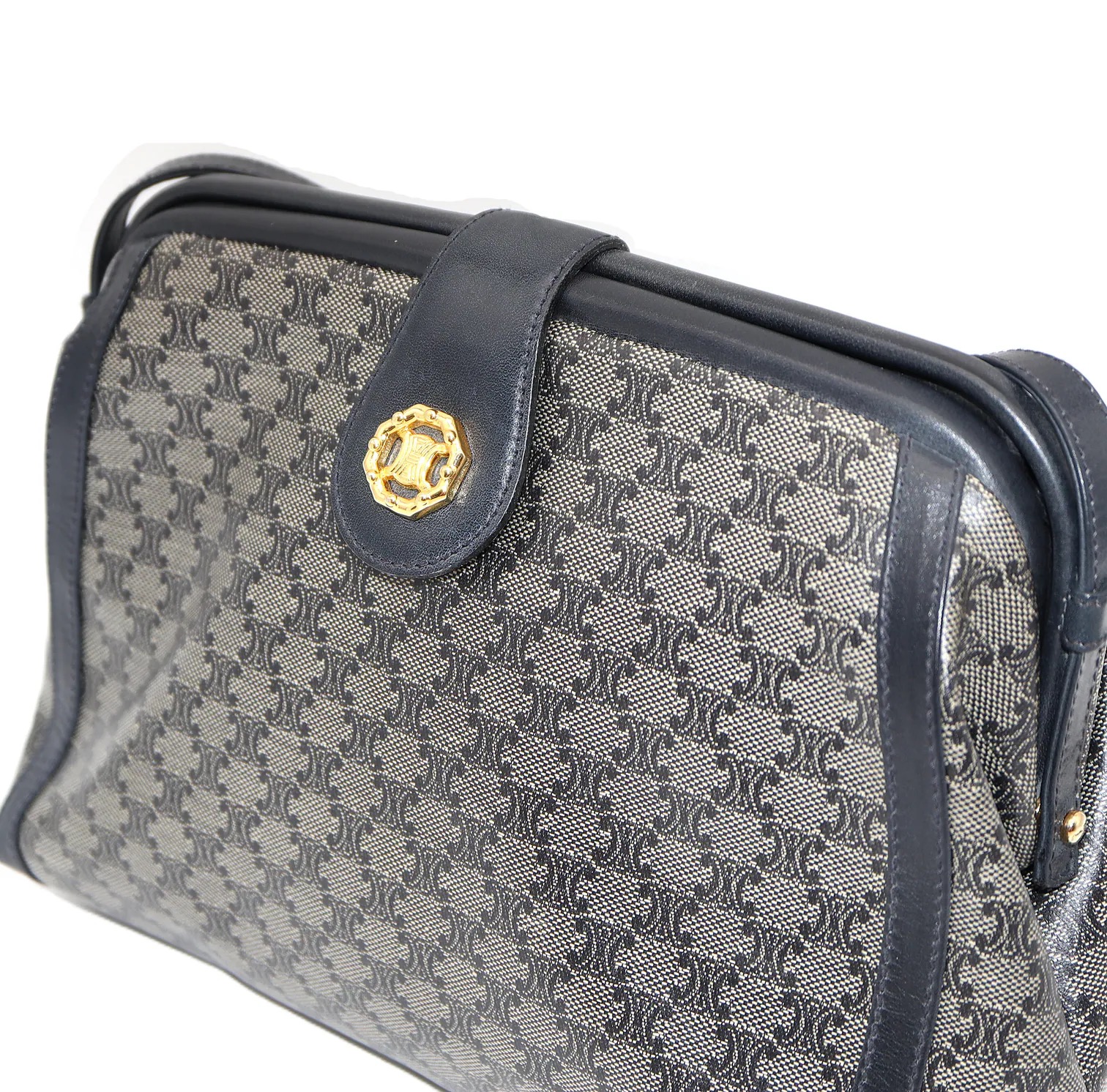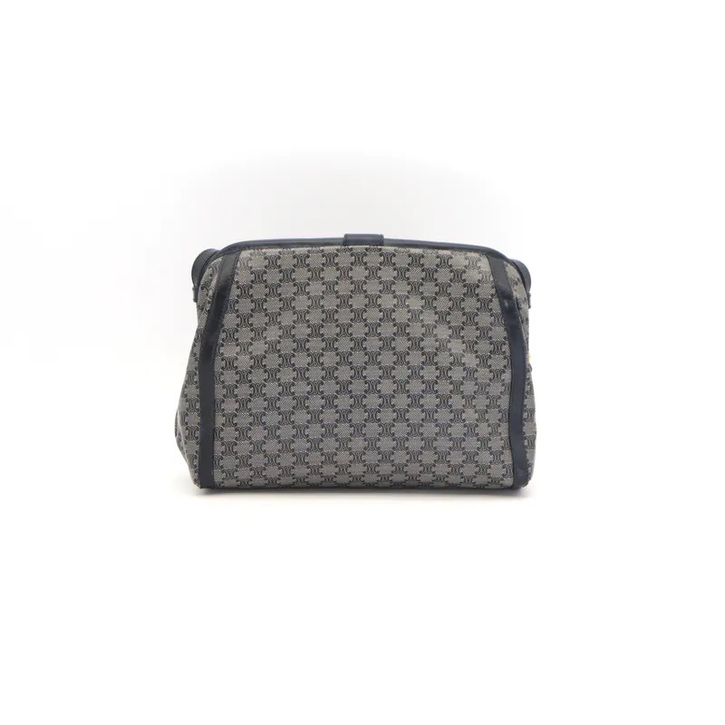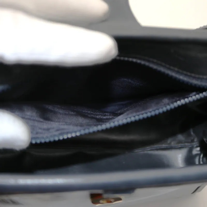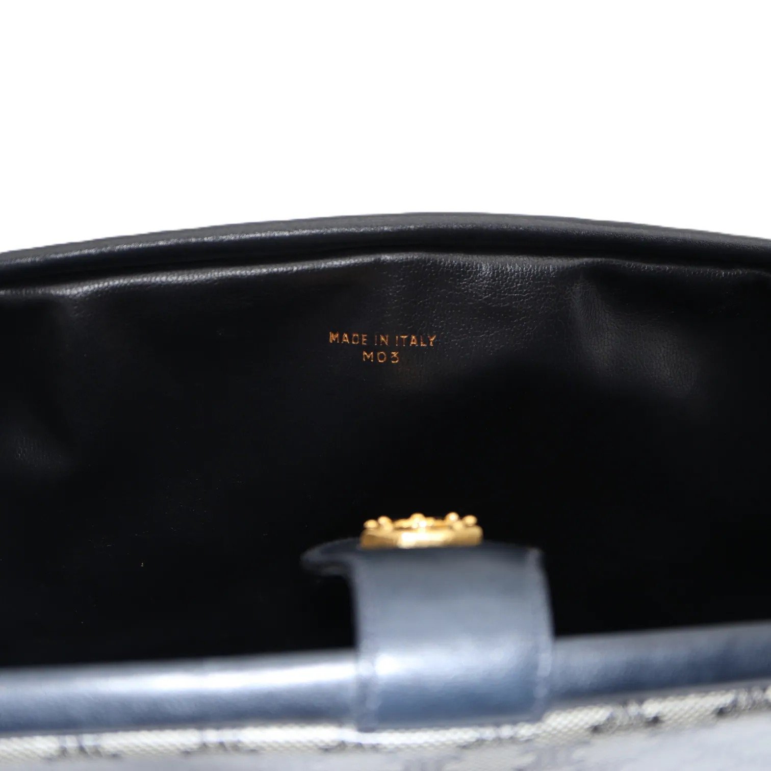 Ranking : AB Colour : Black X Navy X Gold Size : W23 X H18 X D7 cm Strap Length : 104 cm Material : PVC X Leather Remark : Outside leather minor frayed & scratches, Inside frayed and scratches