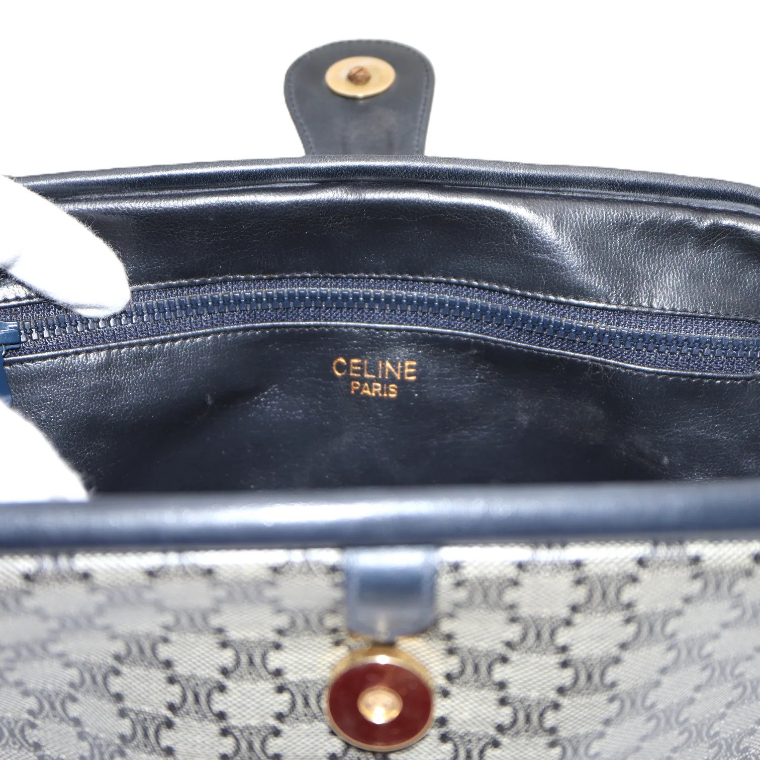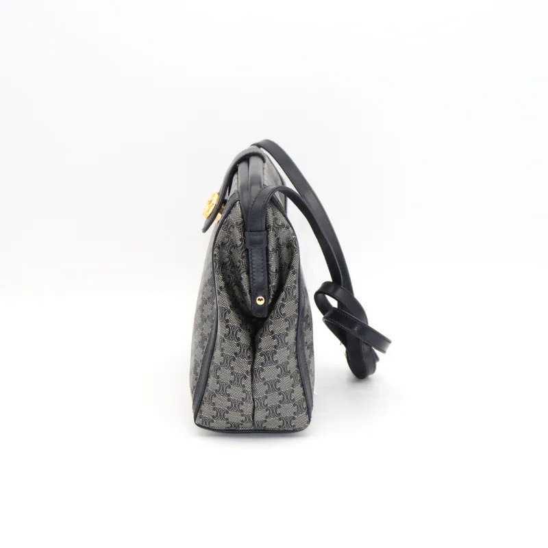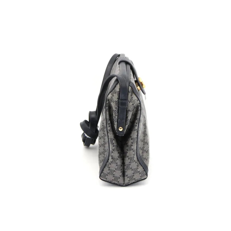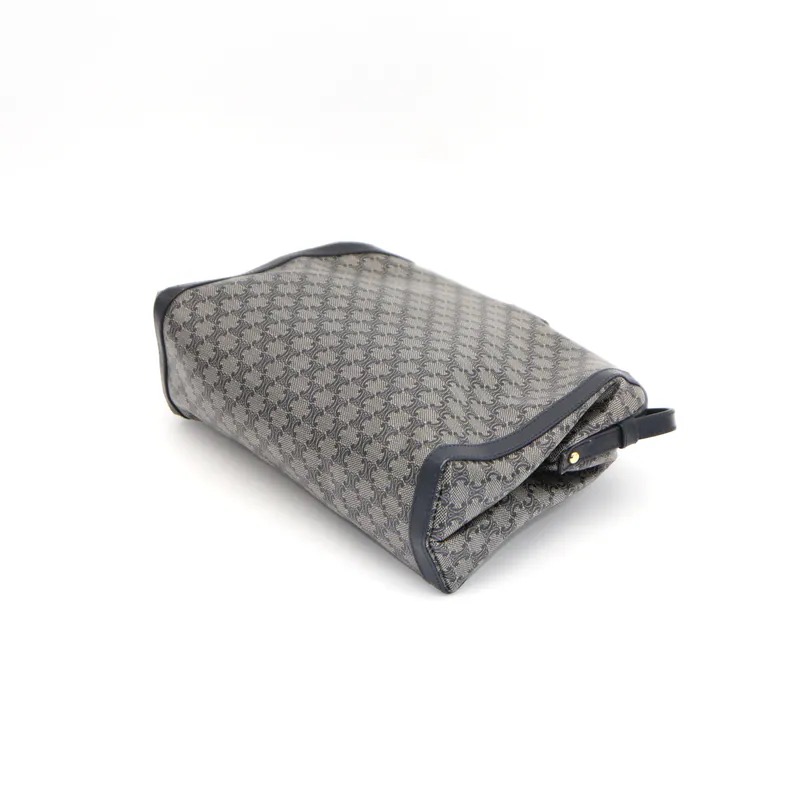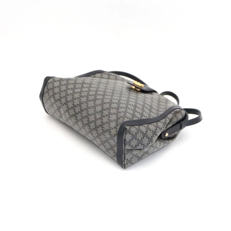 Ranking : AB Colour : Black X Navy X Gold Size : W23 X H18 X D7 cm Strap Length : 104 cm Material : PVC X Leather Remark : Outside leather minor frayed & scratches, Inside frayed and scratches
