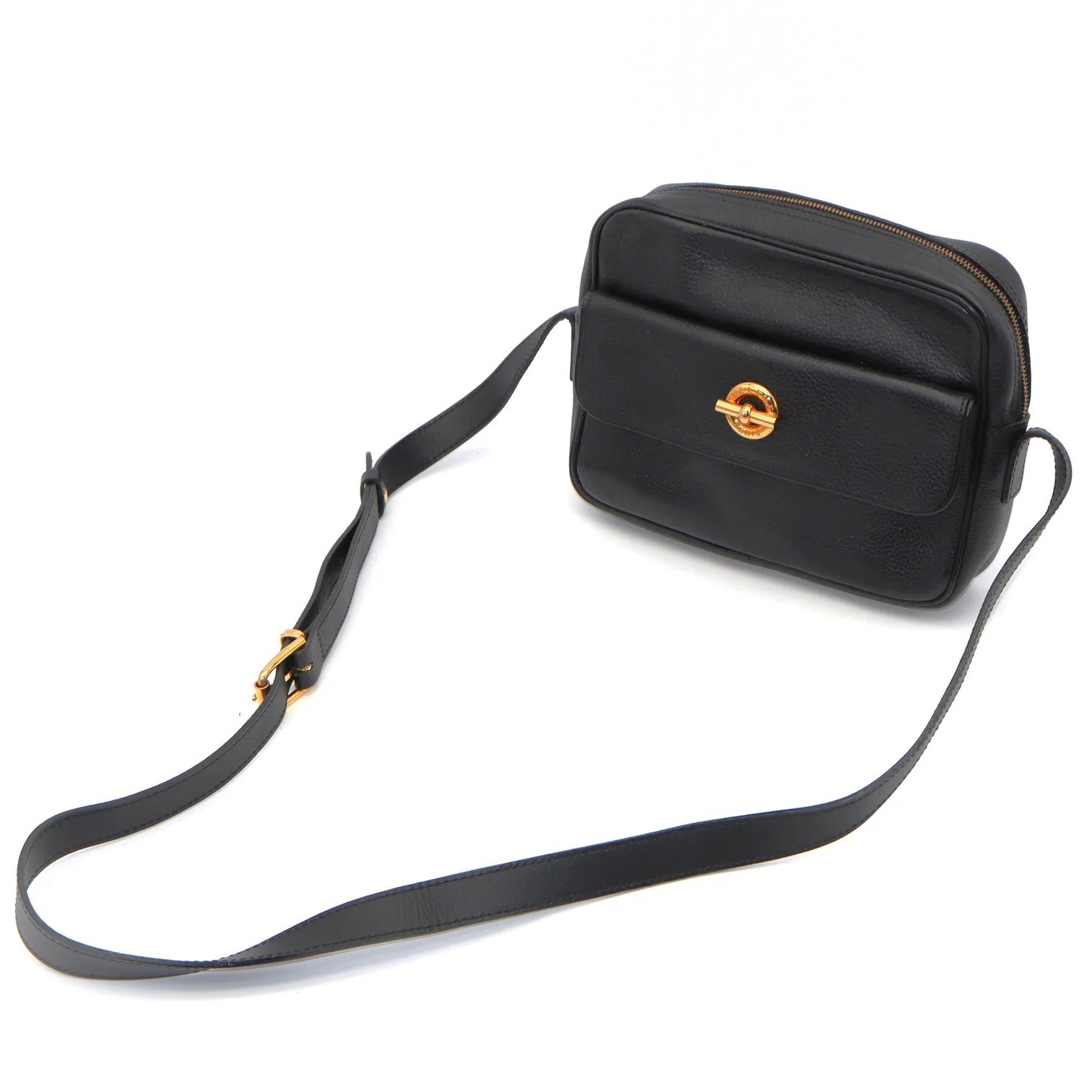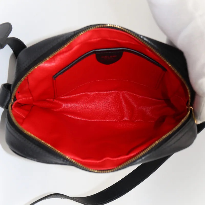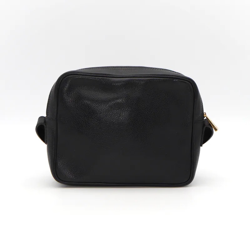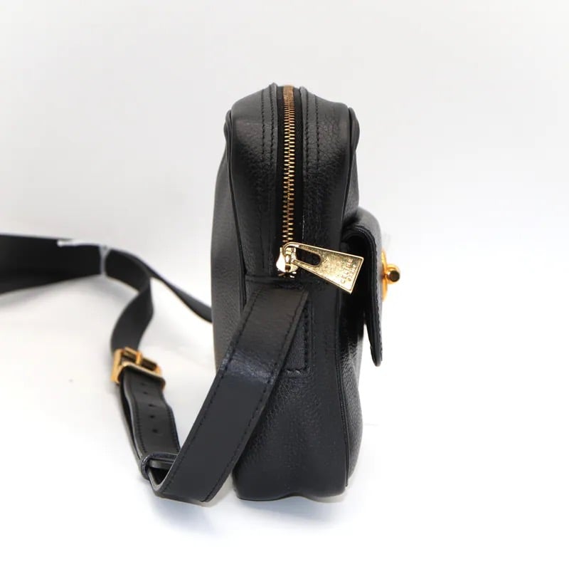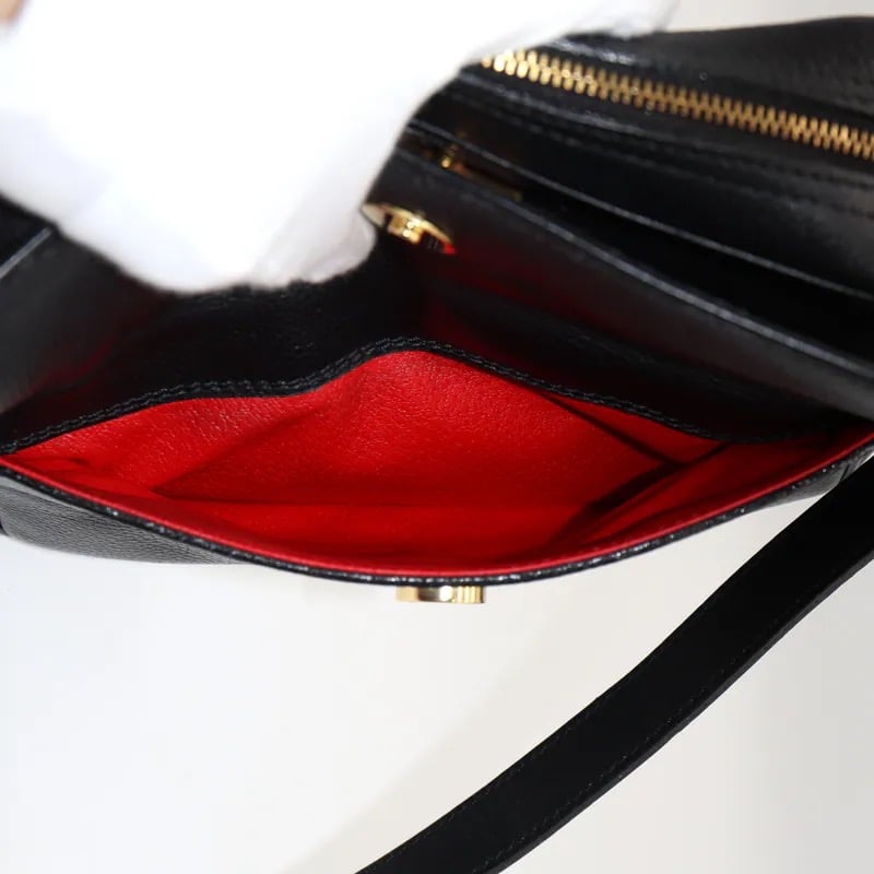 Ranking : A Colour : Black X Gold Size : W20 X H16 X D5 cm Strap : L110-121cm Material : Calfskin Remark : Outside edge minor frayed, outside leather near zip minor frayed