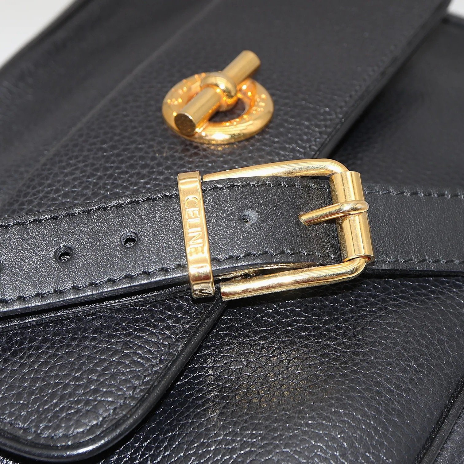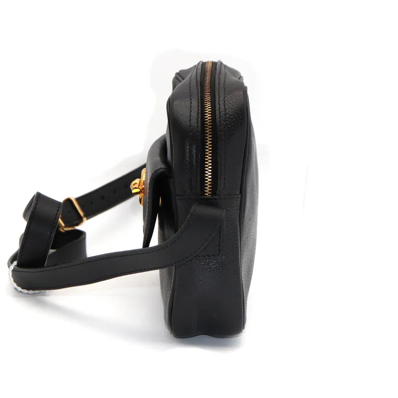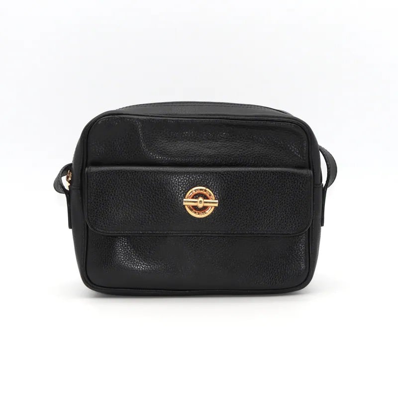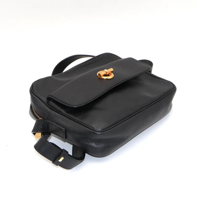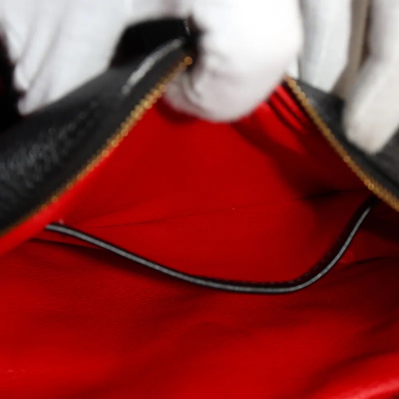 Ranking : A Colour : Black X Gold Size : W20 X H16 X D5 cm Strap : L110-121cm Material : Calfskin Remark : Outside edge minor frayed, outside leather near zip minor frayed