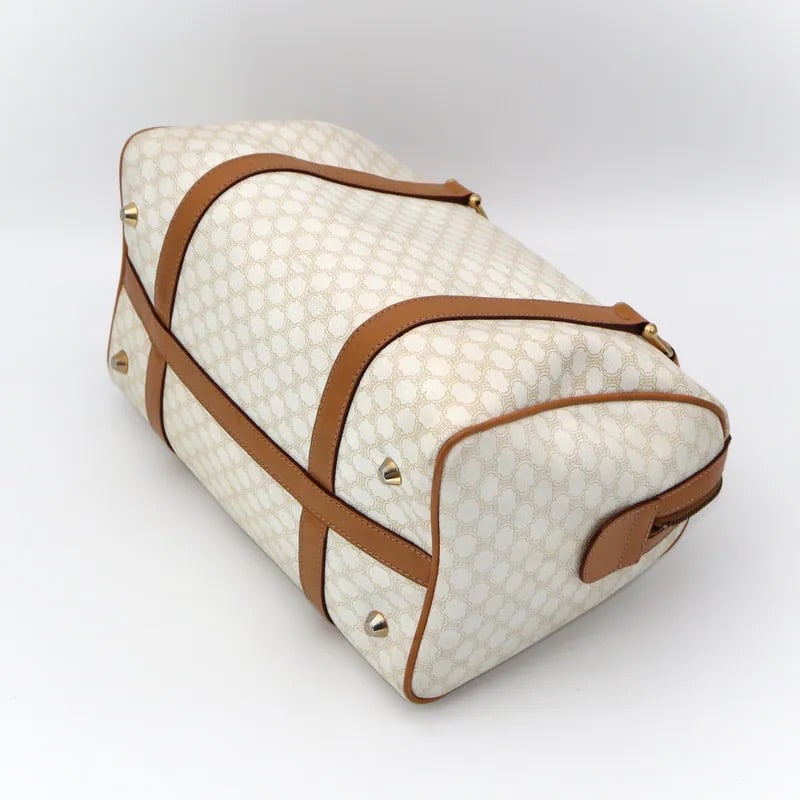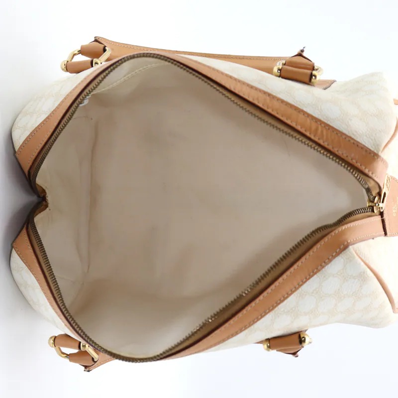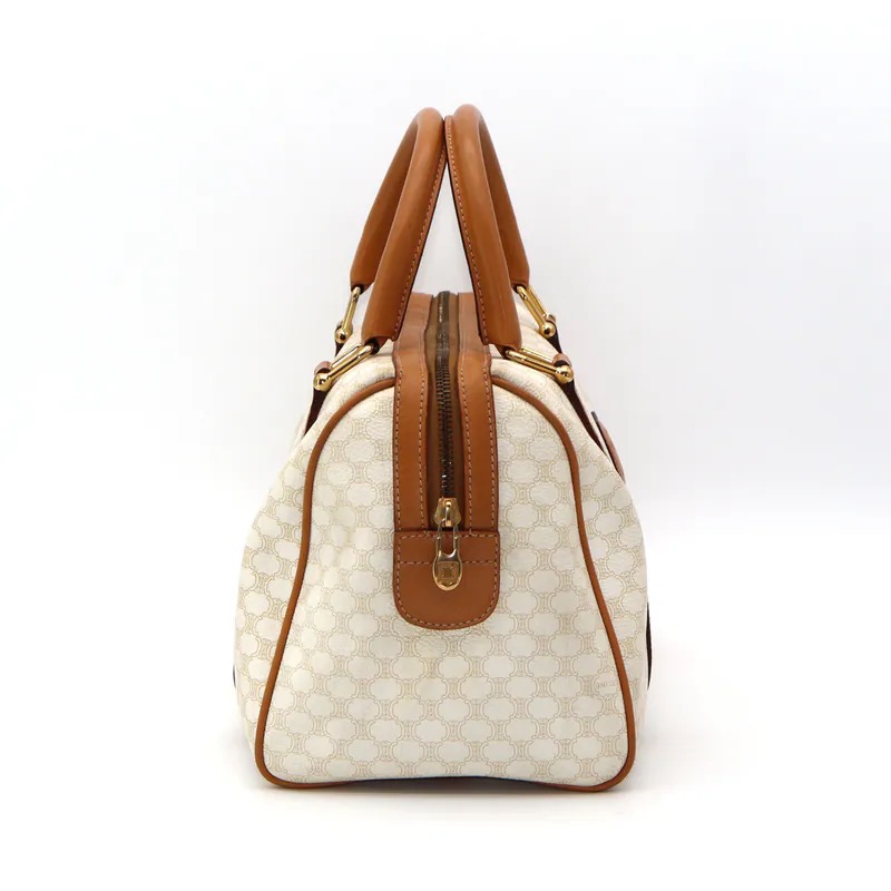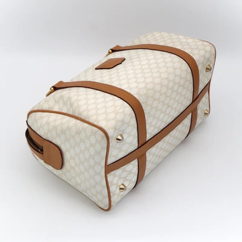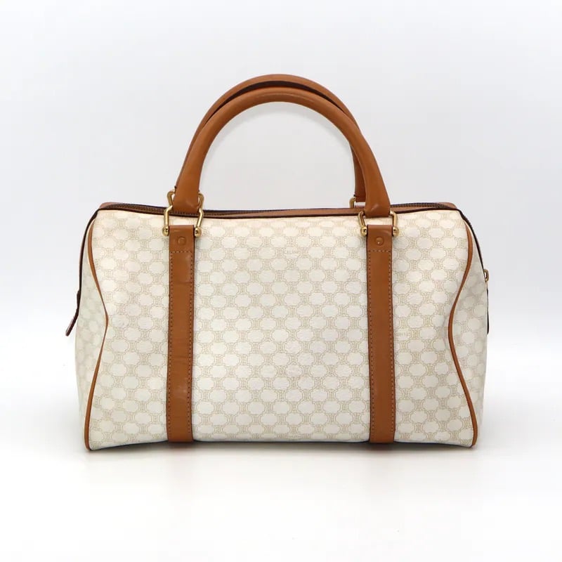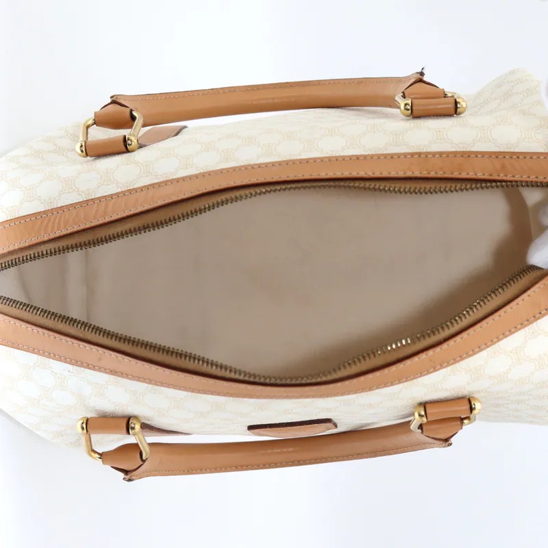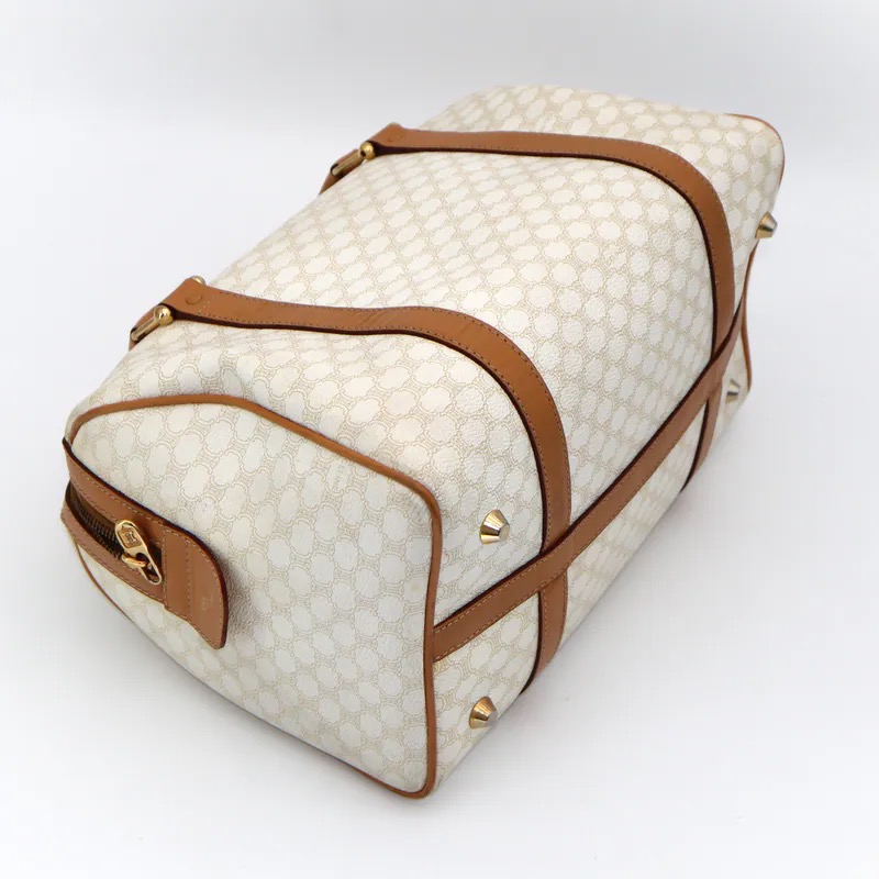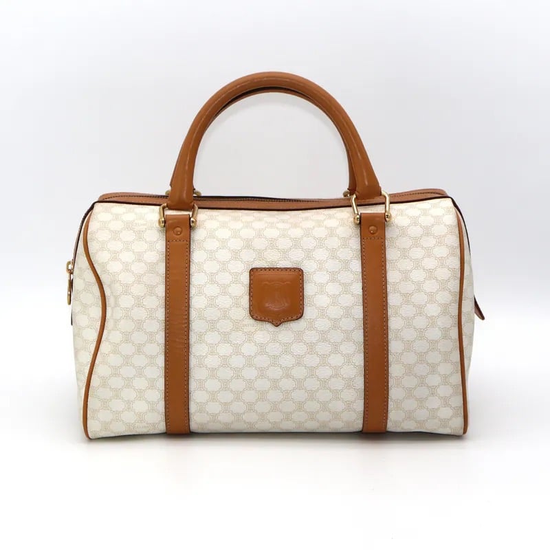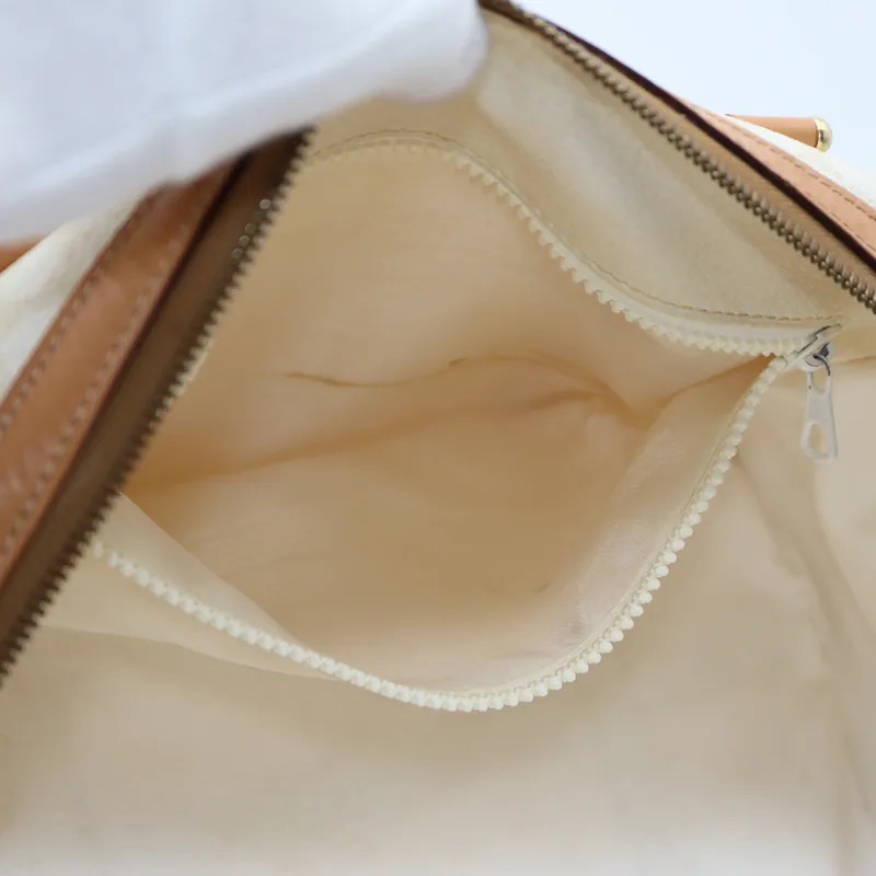 Ranking : B Colour : White X Brown Size : W31 X H22 X D19 cm Handle Drop : 12 cm Material : PVC X Leather Remark : Outside leather creases, outside minor wears, angular minor frayed, Inside scratches and wears