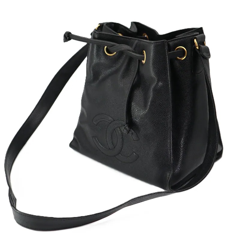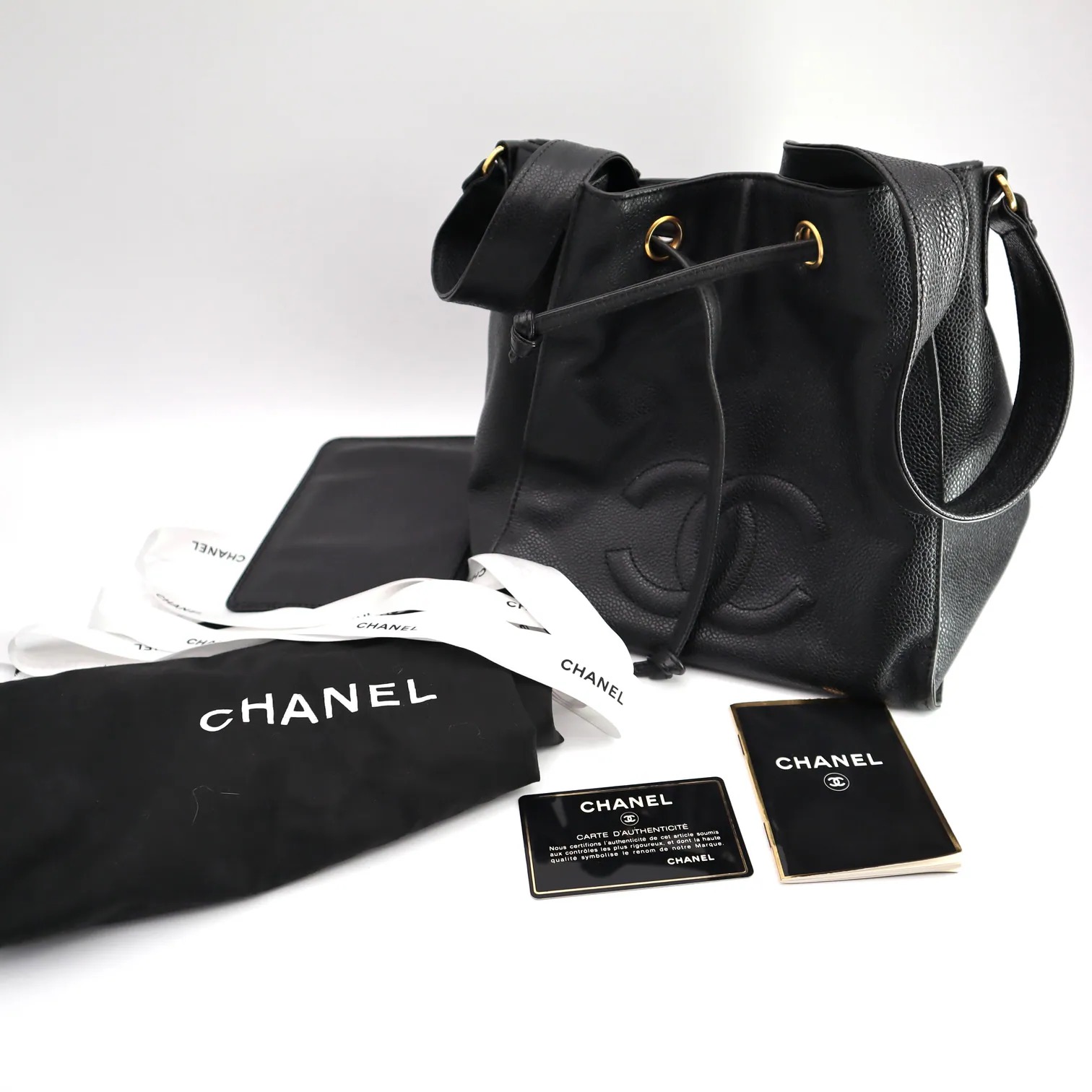 Chanel Coco Mark Caviar Drawstring Shoulder Bag