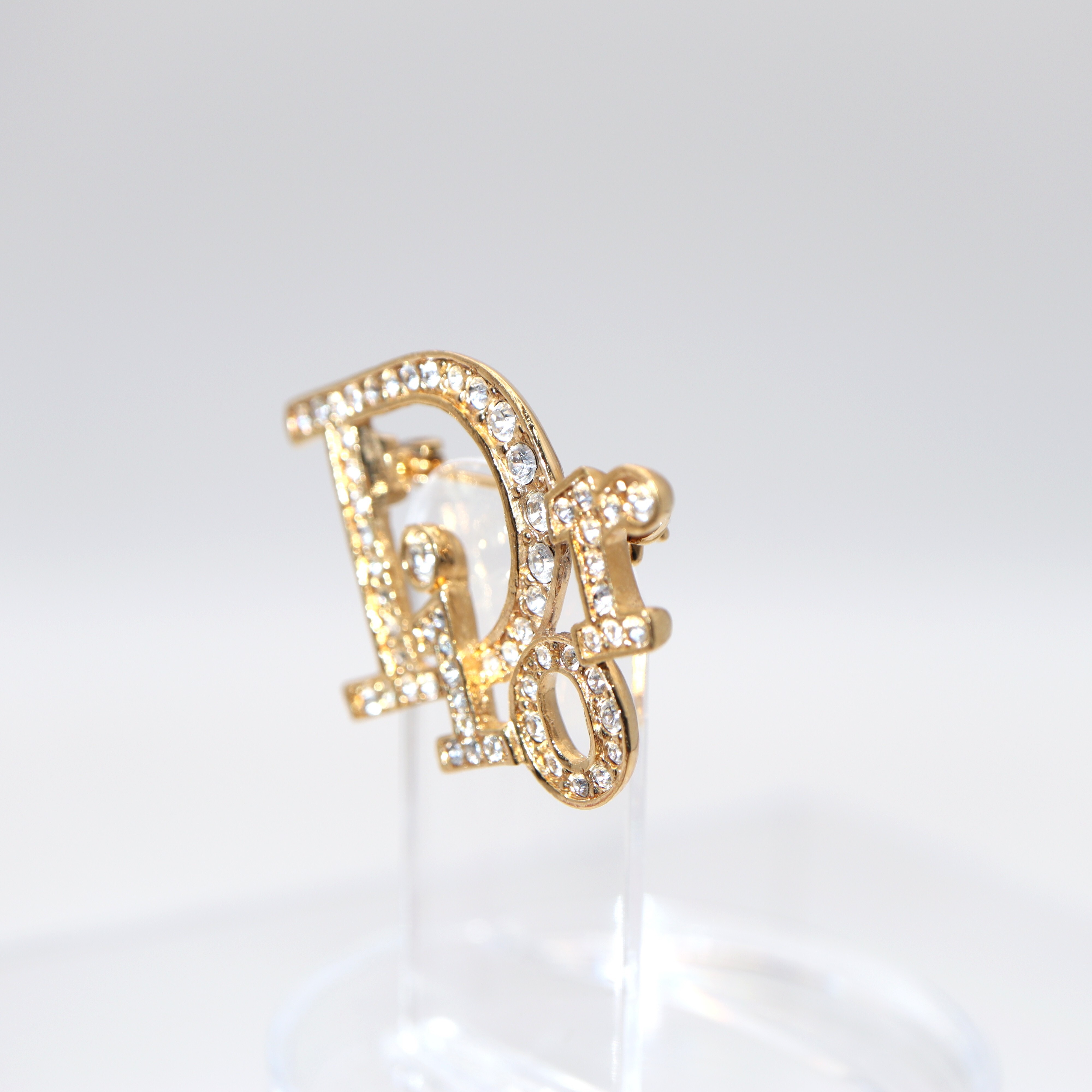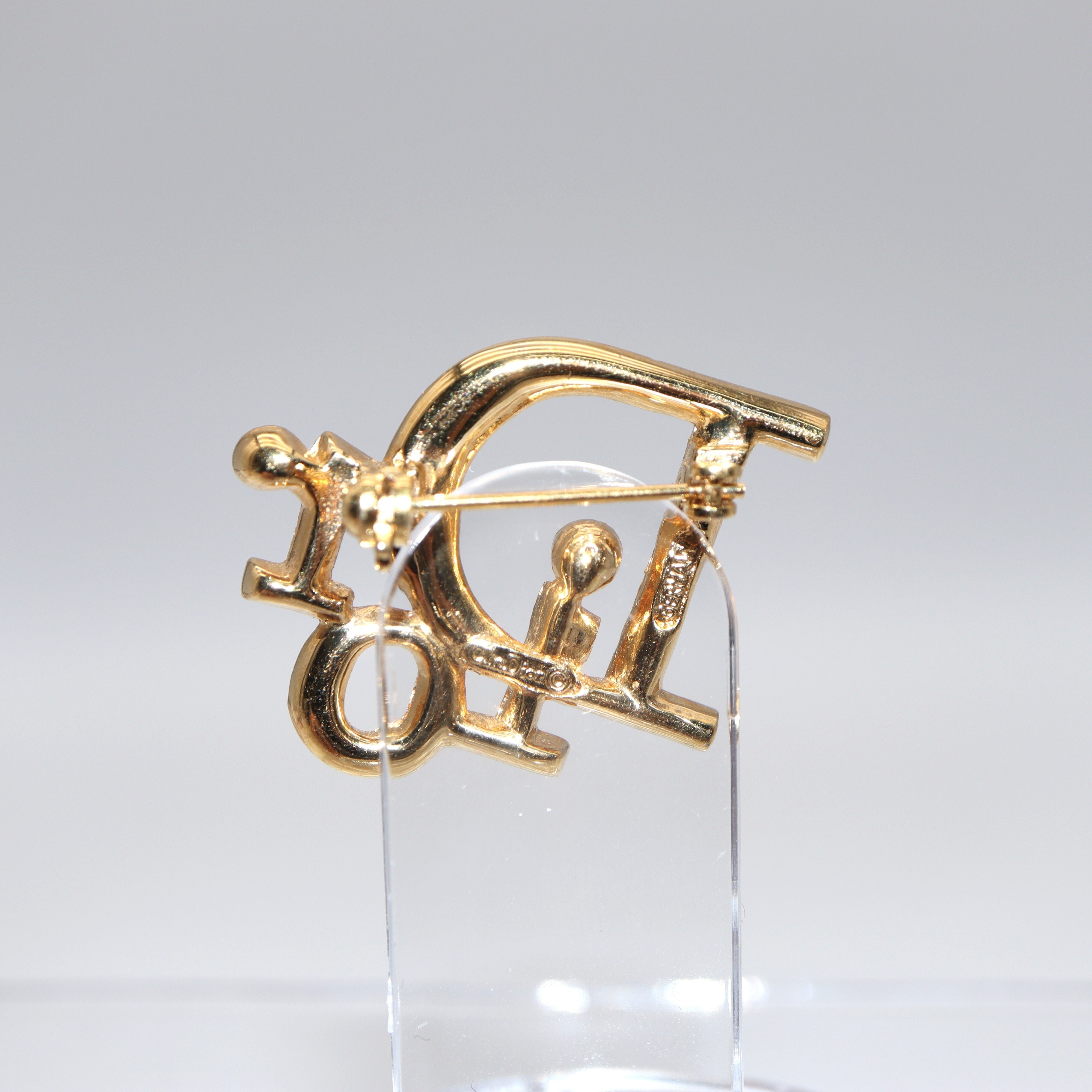 Christian Dior Logo Rhinestone Brooch