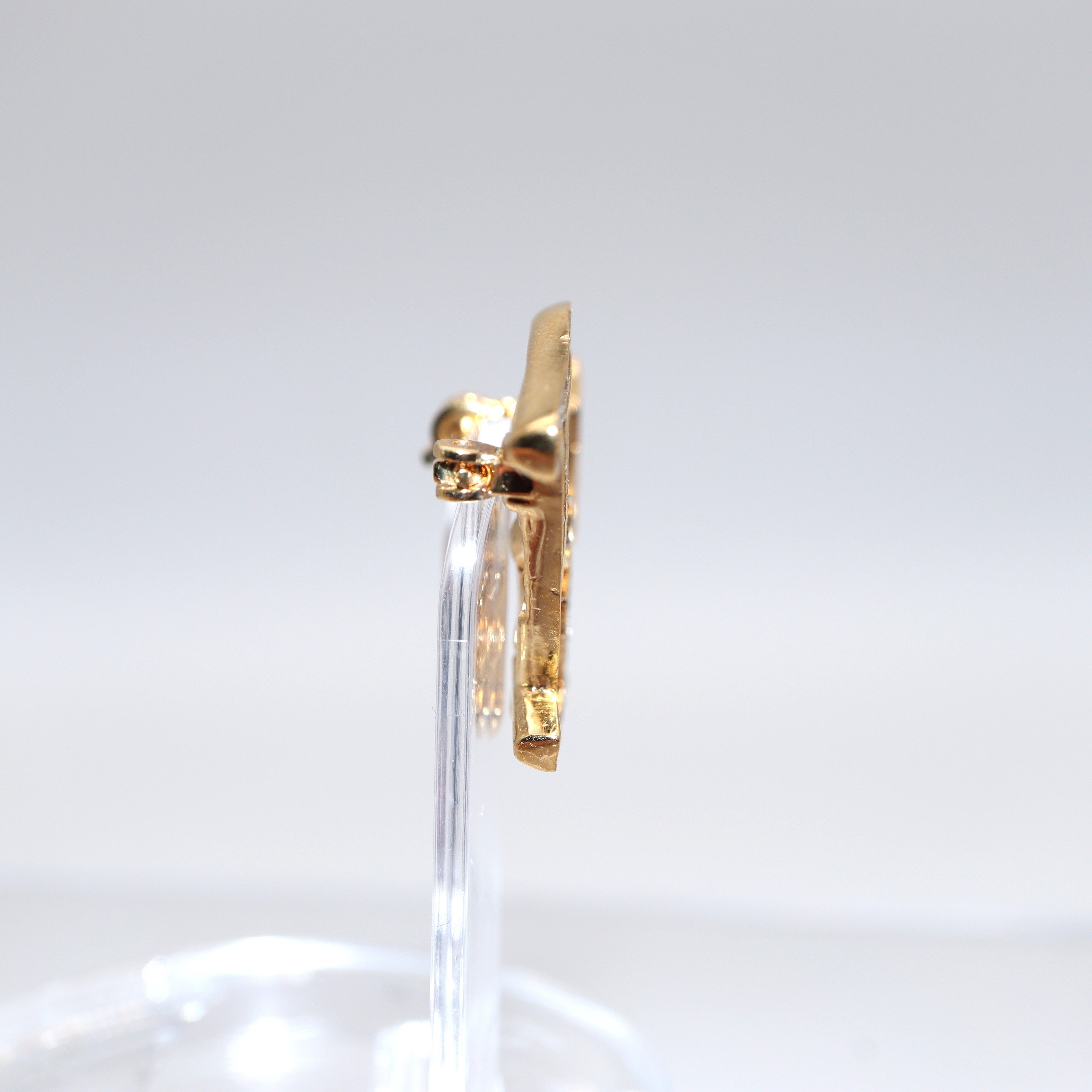 Ranking : AB Colour : Gold × White Size : W3 X H2.6 X D0.8cm Material : GP × Rhinestone Remark : GP minor scratched