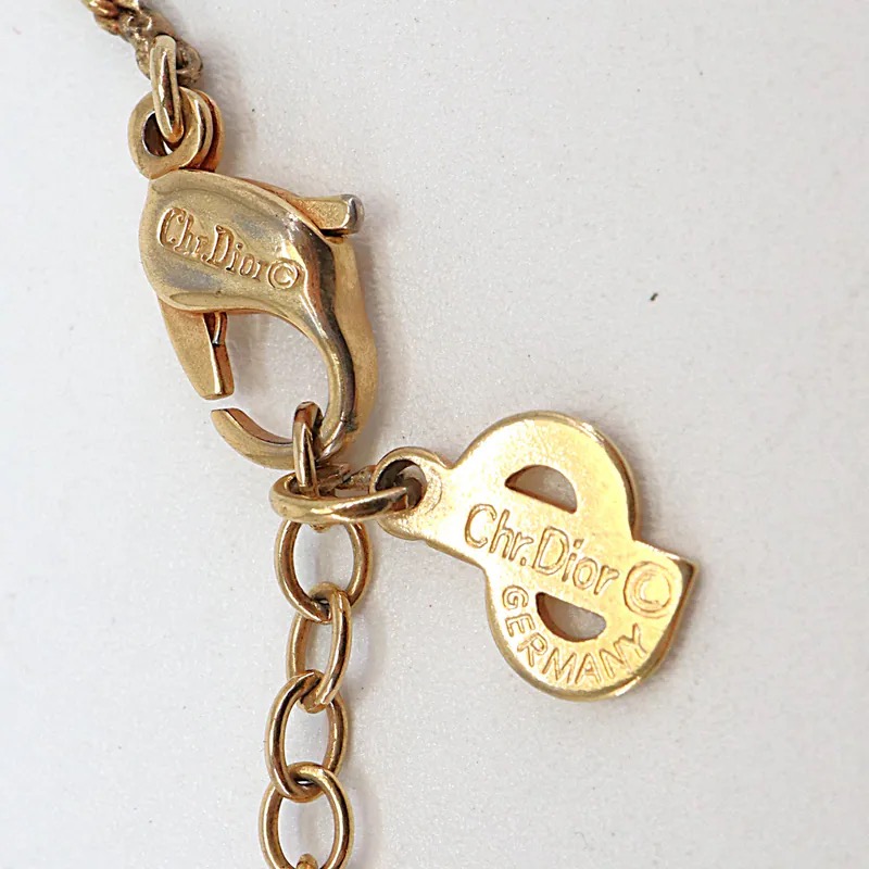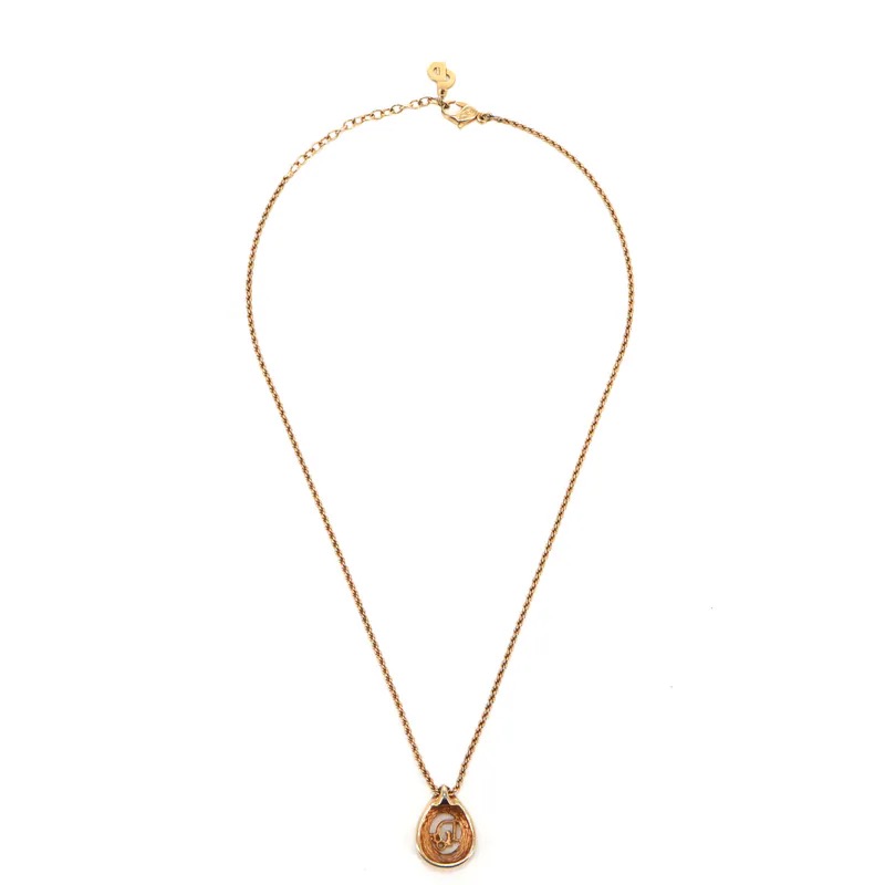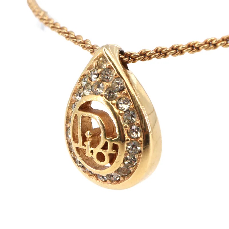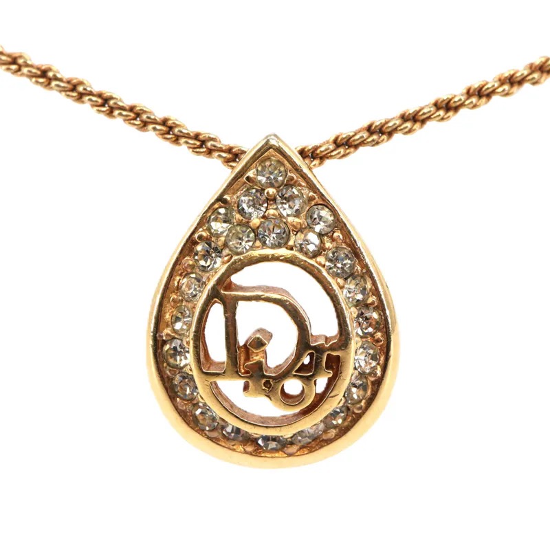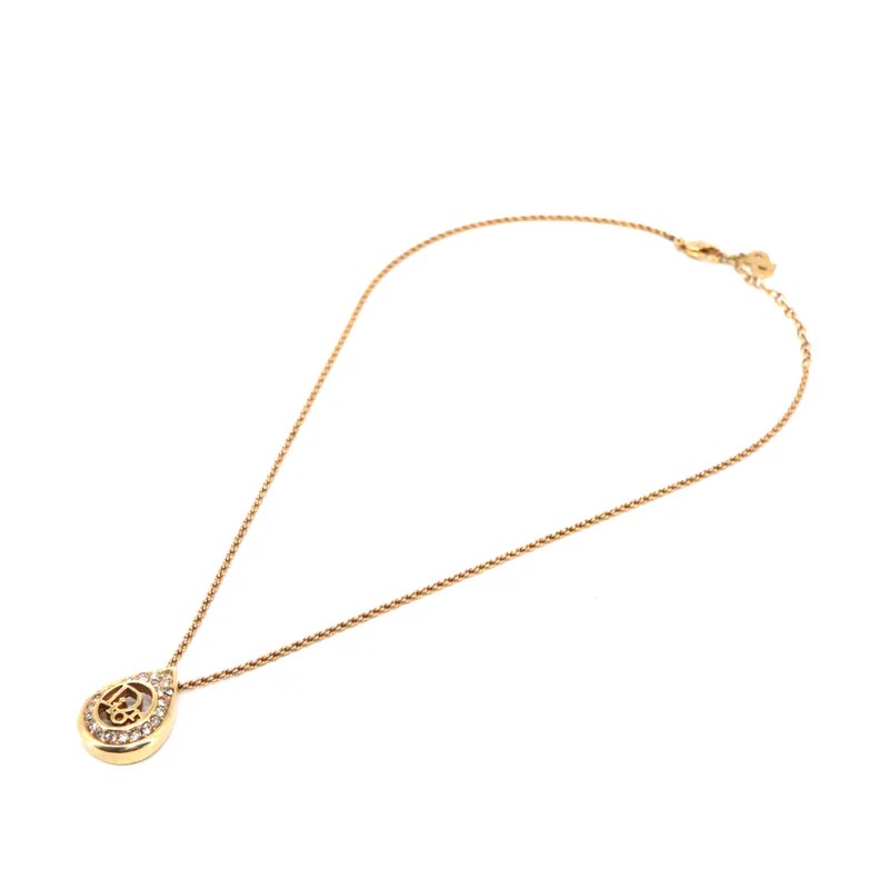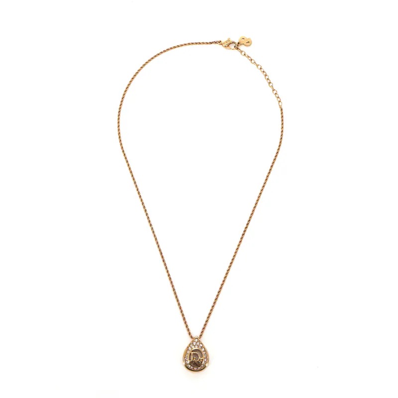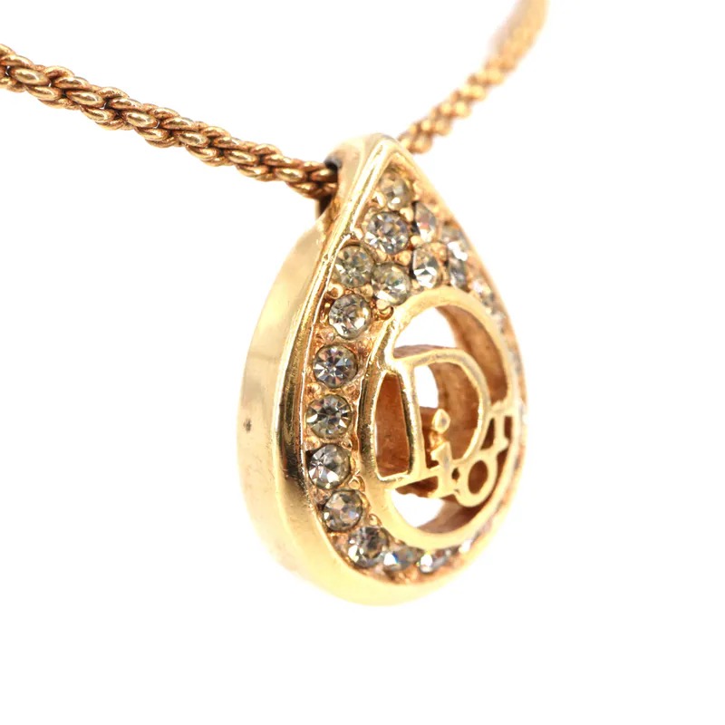 Christian Dior Water Drop Logo Rhinestone Necklace