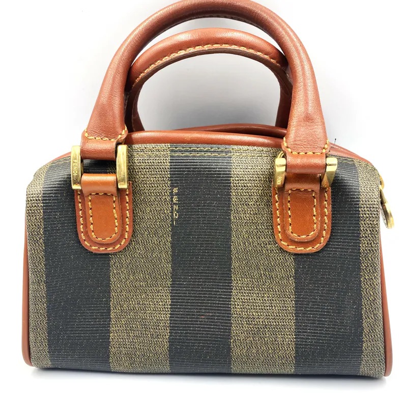 Fendi Pecan PVC Leather Hand Bag Boston 17cm