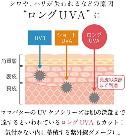 【無添加配方,新生兒也可以使用】含有天然保濕成分有機乳木果油,滋潤敏感肌膚,同時阻擋紫外線。雖然它具有防水配方,可以抵抗汗水和水,但可以用肥皂去除。不使用紫外線吸收劑、有機矽、對羥基苯甲酸酯、乙醇、合成香料、合成著色劑、礦物油、動物原料或石油基界面活性劑。 [抵禦外部壓力] 阻擋長波UVA射線深入皮膚,保護您的皮膚免受日常紫外線的傷害。此外,我們也專注於吸菸、廢氣、霧霾等空氣污染造成的皮膚損傷。含有一種成分(黃芩根萃取物),可保護皮膚免受外部刺激引起的乾燥。 [高保濕力] 高保濕霜型,可保護肌膚免受加熱和冷卻引起的乾燥。它不僅可以用於身體,還可以用於臉部和作為底妝。 【原產地】日本