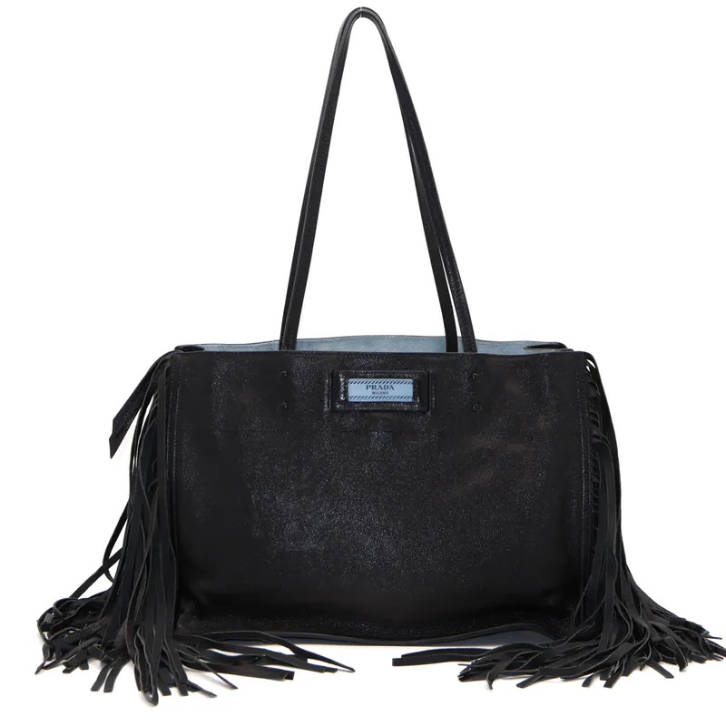 Prada Glace Calf Etiquette Fringe Tote Bag
