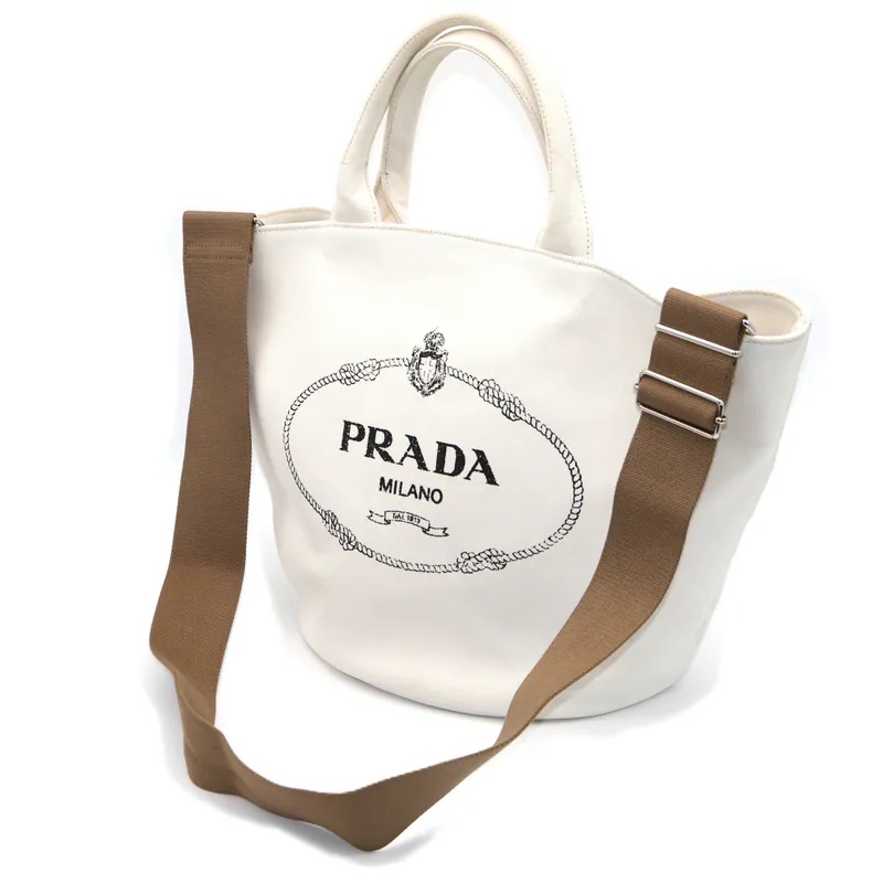 Prada Sacca 2 Manici Vitello Daino Naturale 2way Bag