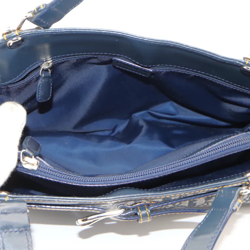 Ranking : A Colour : Navy Size : W38 X H20 X D11 cm Handle Drop : 16cm Material : Canvas X Leather Remark : Outside leather parts near handle scratched, metal parts minor oxidized