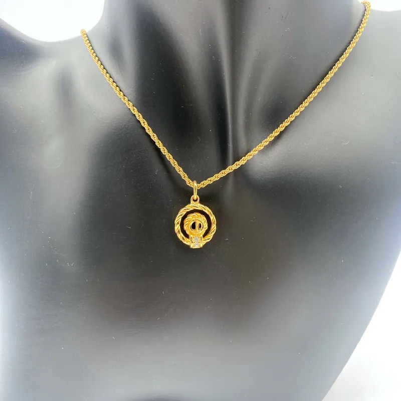 Ranking : AB Color : Gold Size : W1.5 X H1.5 cm Chain Length : 38-44 cm Material : GP X Rhinestone Remark : Chain losing luster