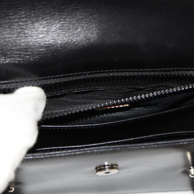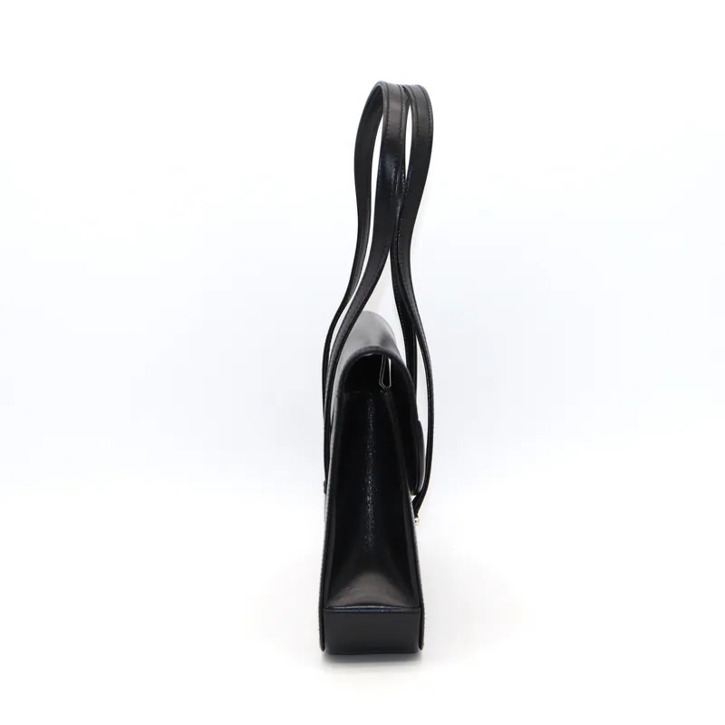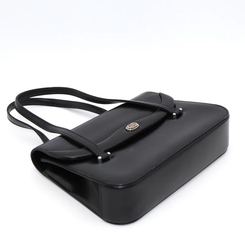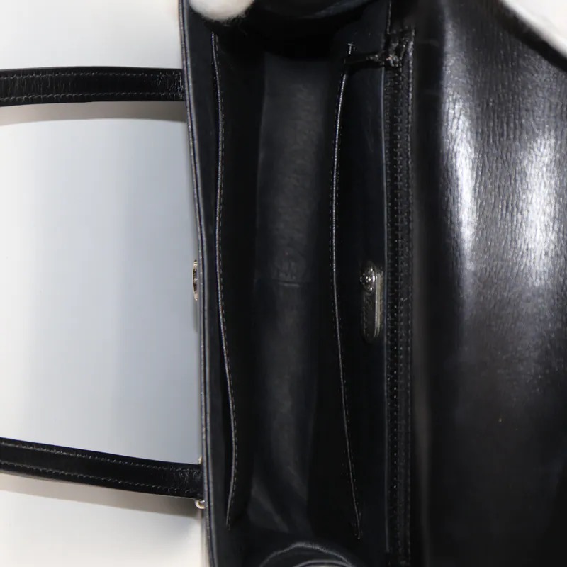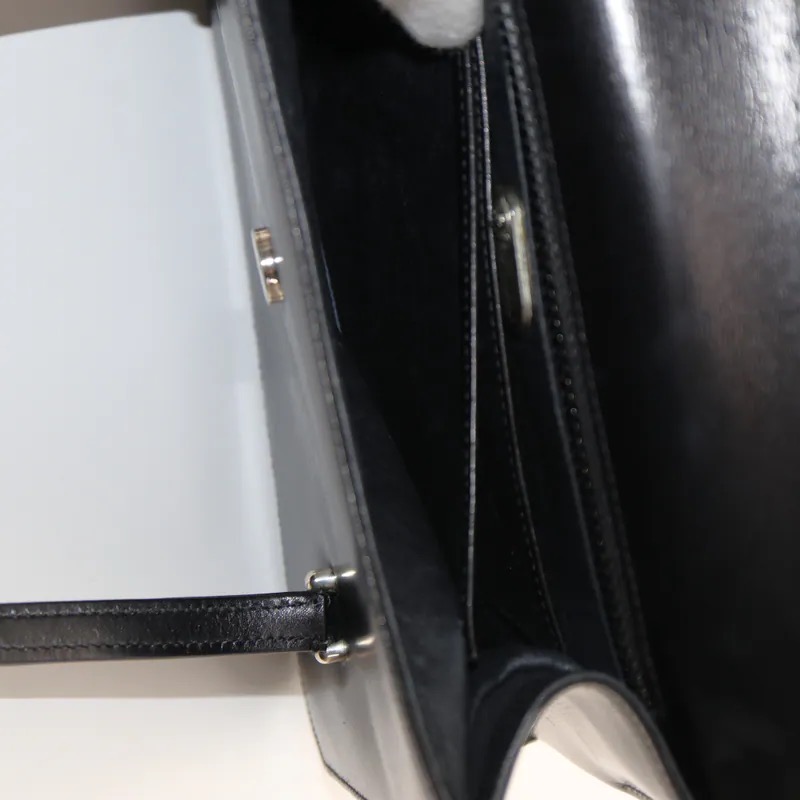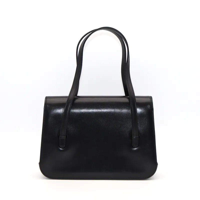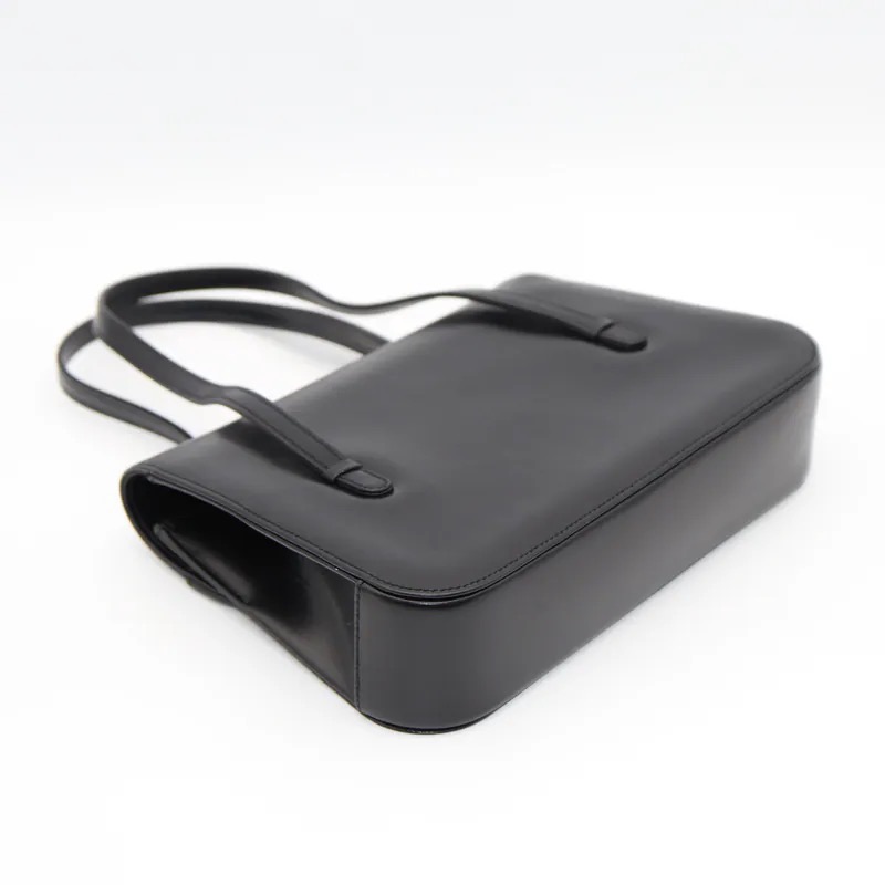 Ranking : A Colour : Black Size : W23 X H16 X D5 cm Handle Drop : 14cm Material : Box Leather Remark : Outside bottom minor scratched, Inside scratched, Angular frayed, Metal parts losing luster