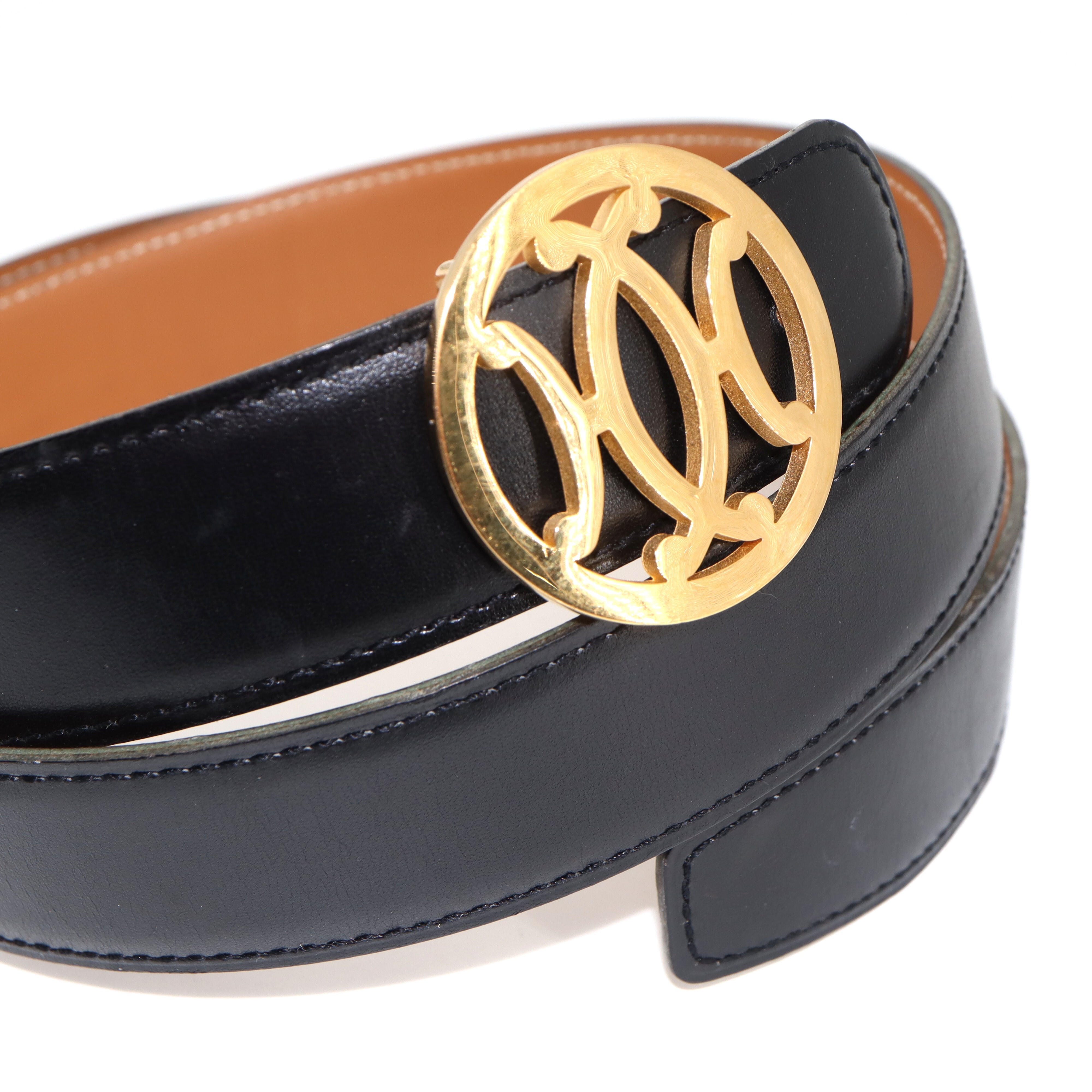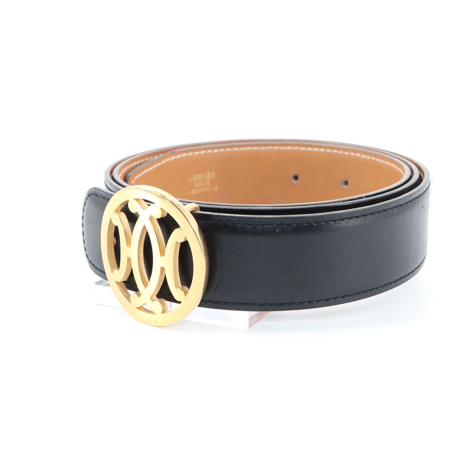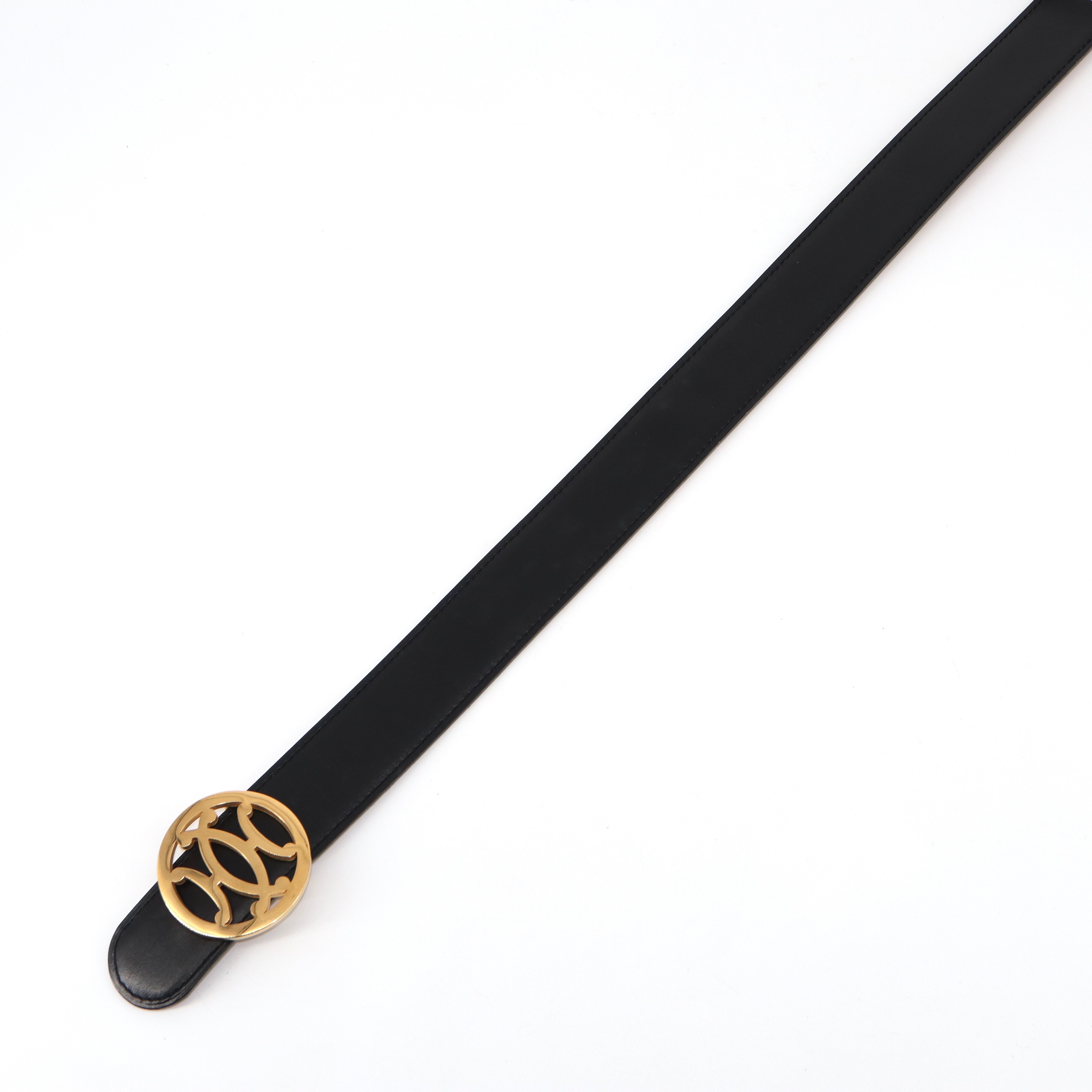 Ranking : AB Color: Black X Gold Belt Size: L 110 x W 3 cm Belt Buckle Size: L 4.7 x H 4.7 cm Material : Leather X GP Waist Size: 36" / 37" / 38" Belt Length : 110 cm Stamp year : 1997 Remark : Leather is slightly frayed and scratched