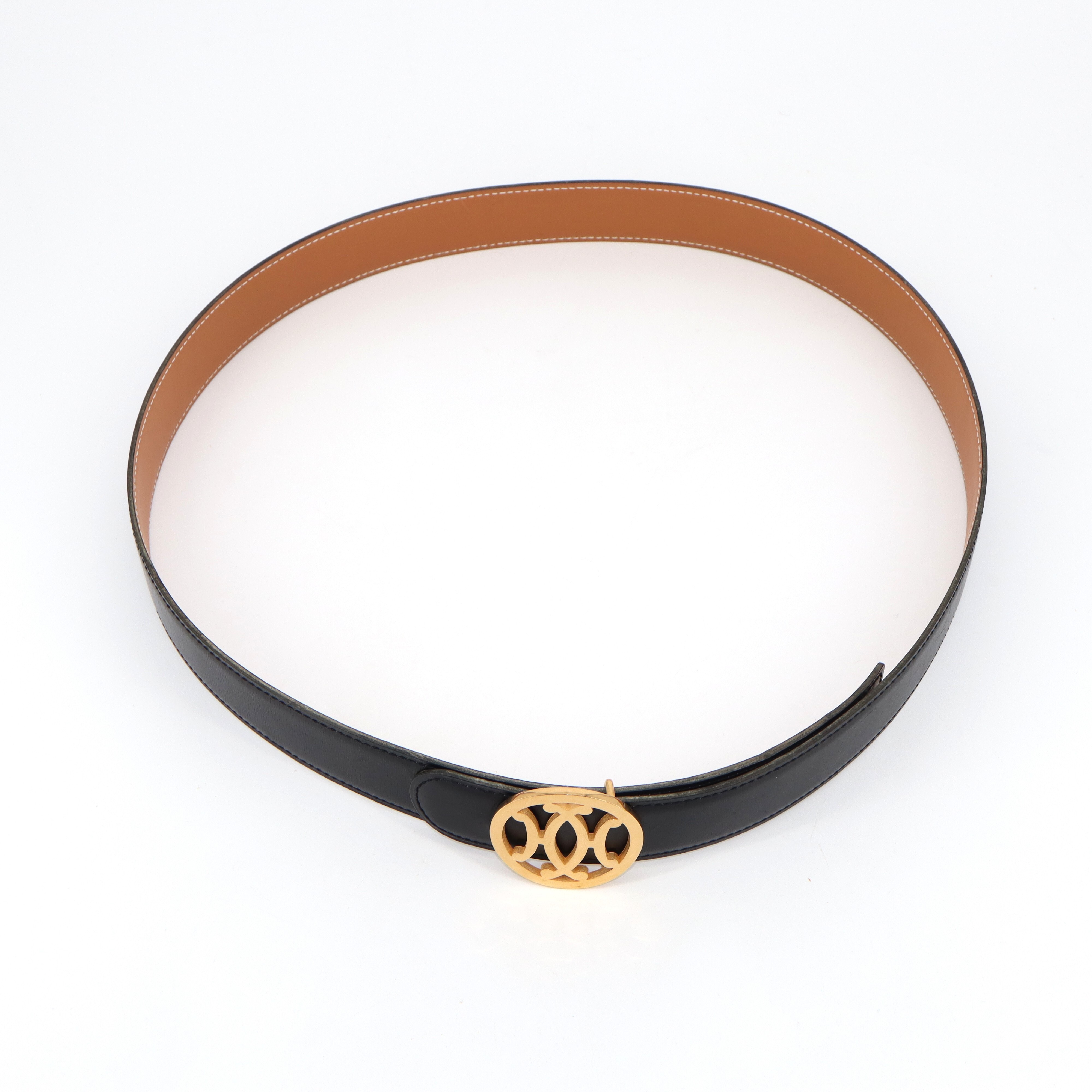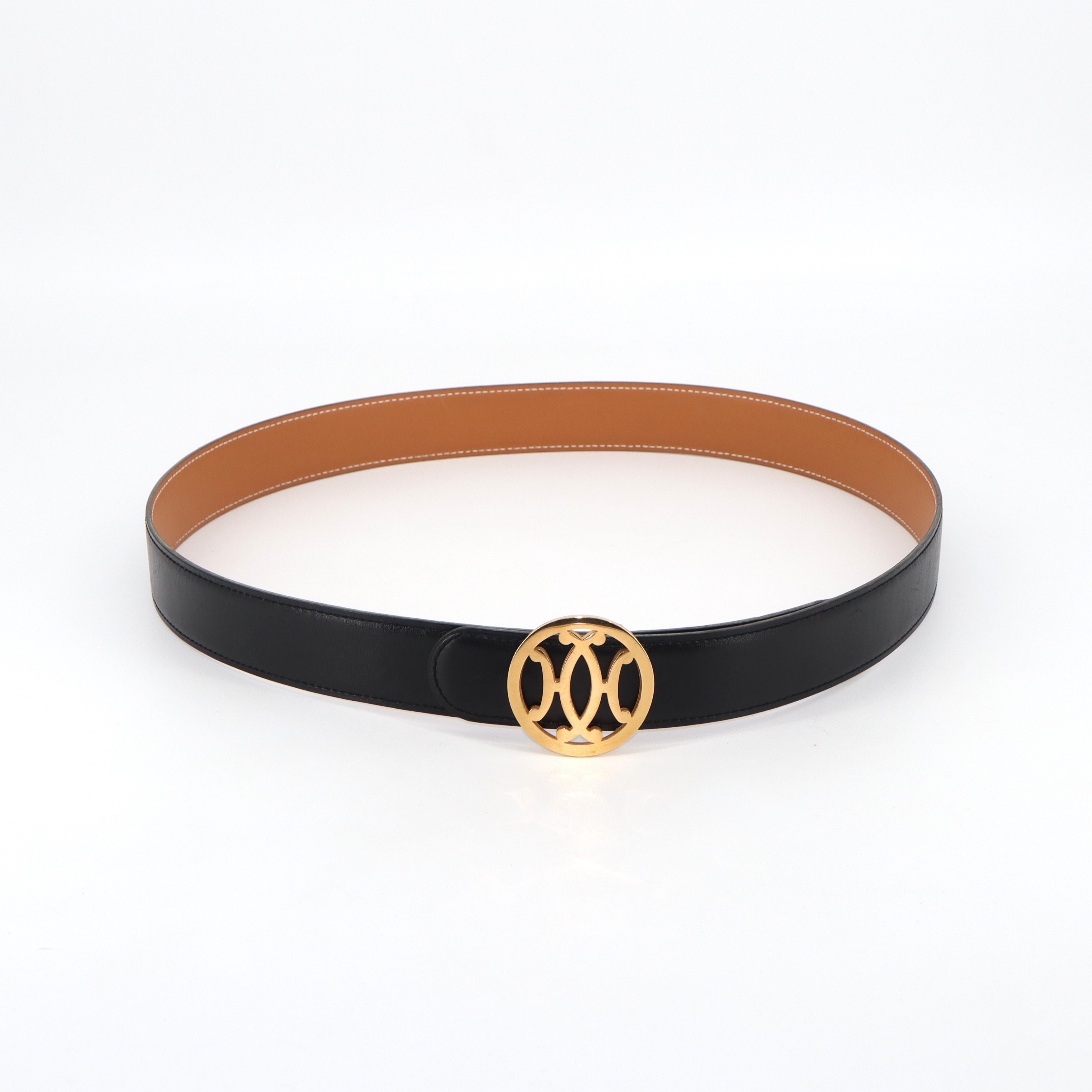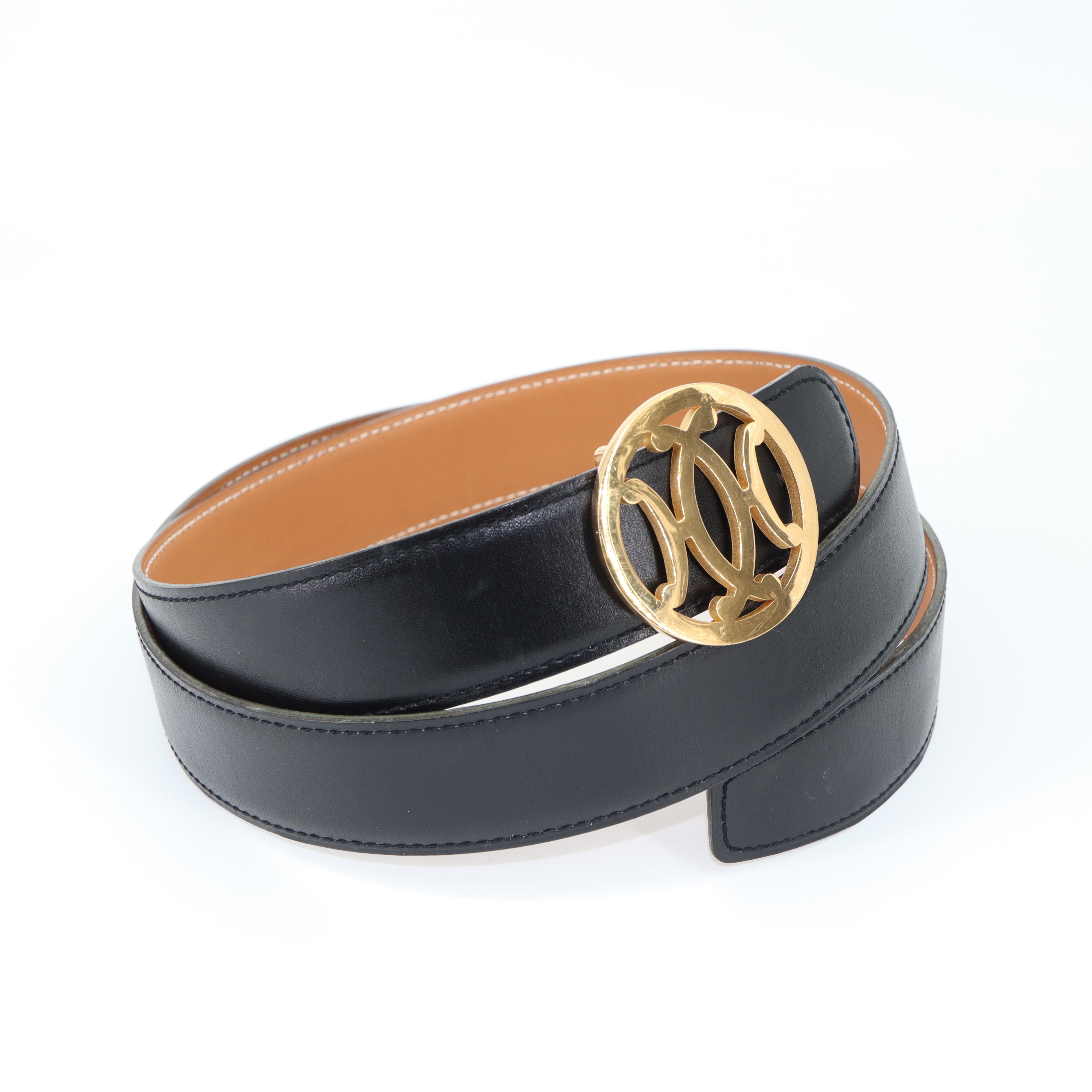 Ranking : AB Color: Black X Gold Belt Size: L 110 x W 3 cm Belt Buckle Size: L 4.7 x H 4.7 cm Material : Leather X GP Waist Size: 36" / 37" / 38" Belt Length : 110 cm Stamp year : 1997 Remark : Leather is slightly frayed and scratched