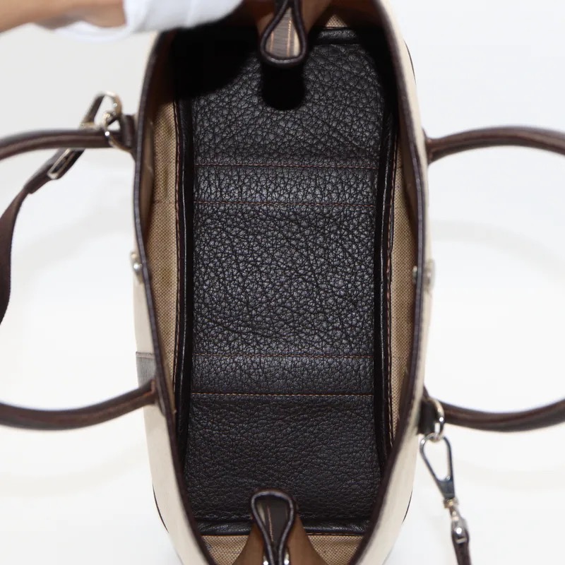 Ranking : AB Colour : Beige X Brown Size : W30 X H21 X D13 cm Handle Drop : 11 cm Strap Length : 100 cm Stamp : 2004 Year Material : Toile Officier Remark : Outside minor dirt, bottom leather edge scratches, Inside discoloration