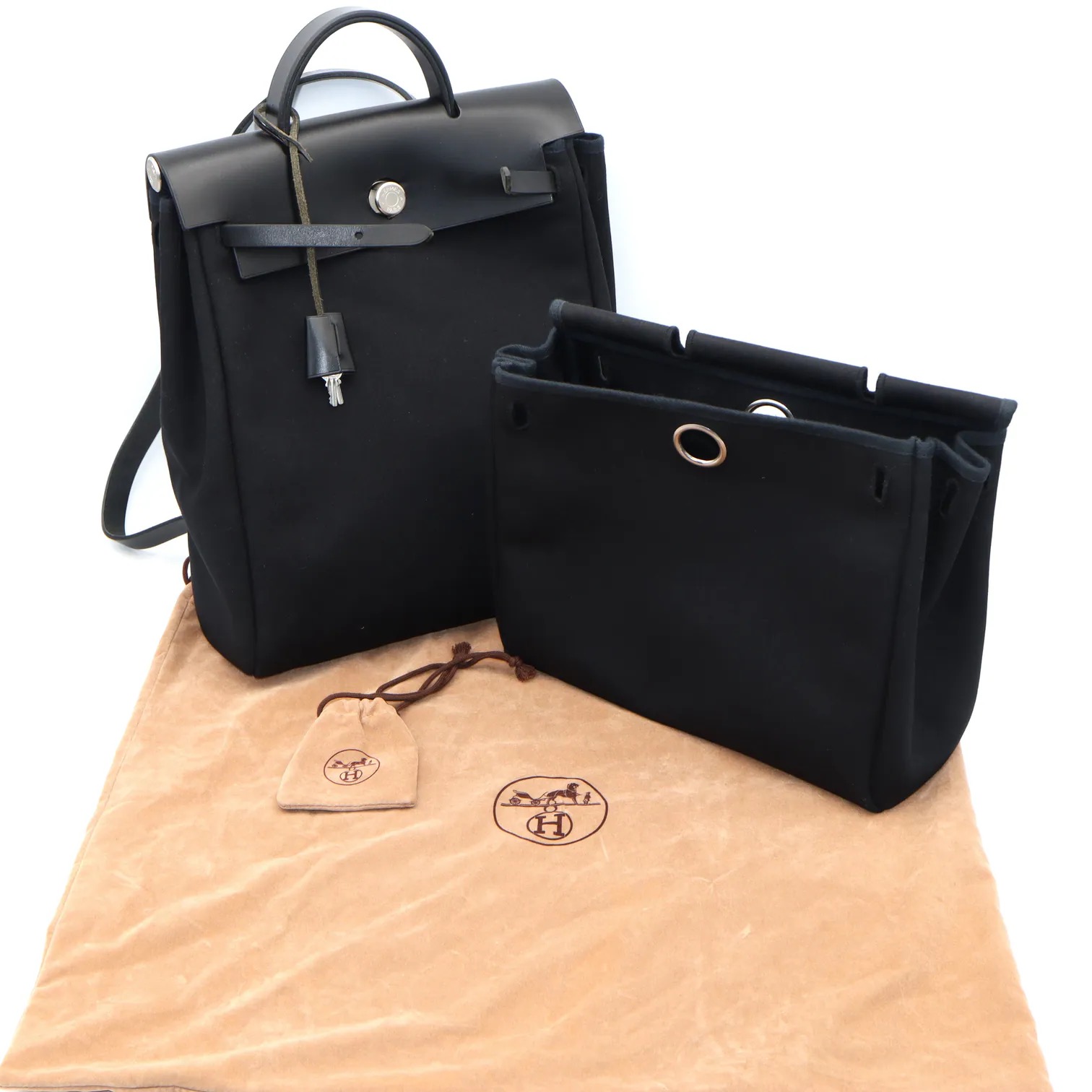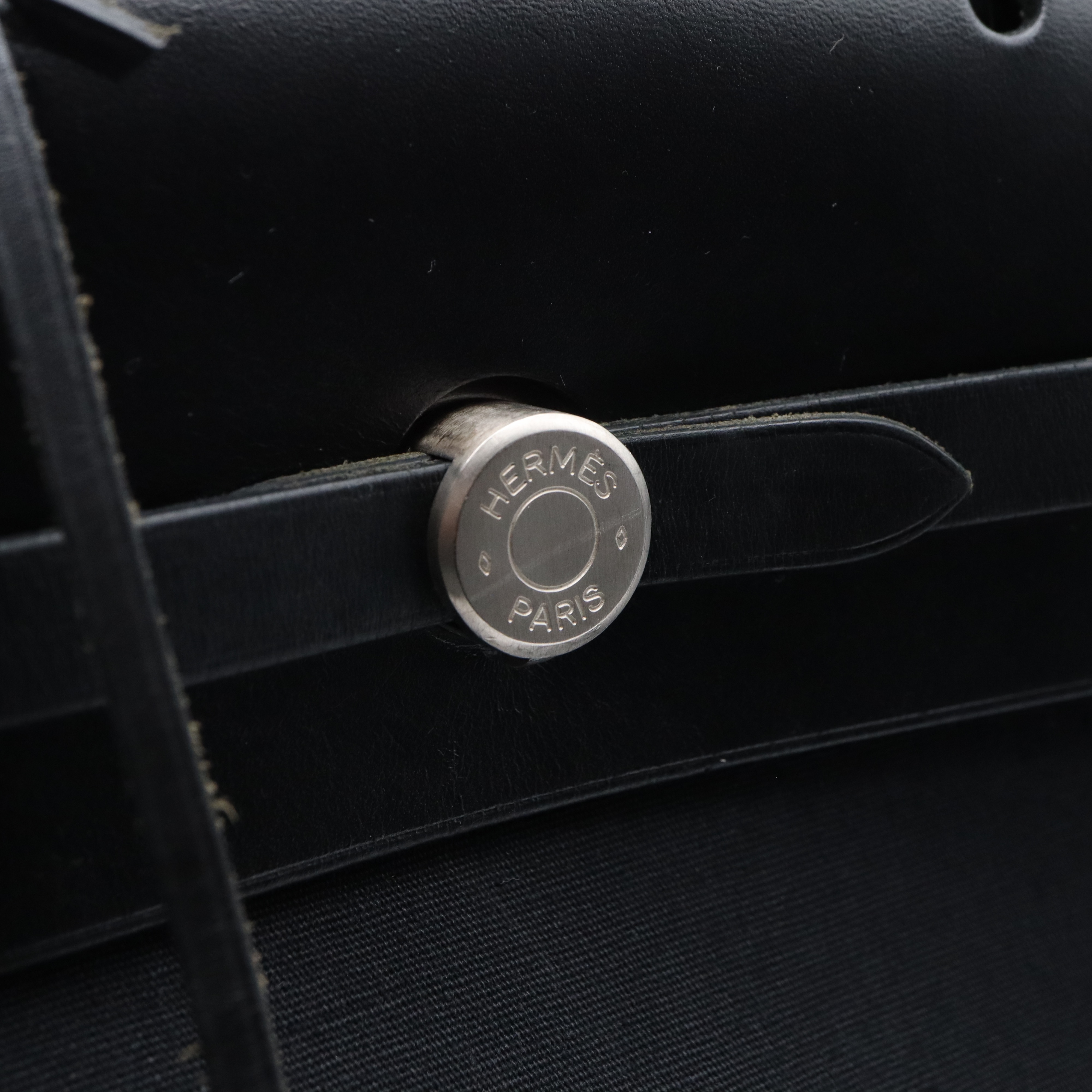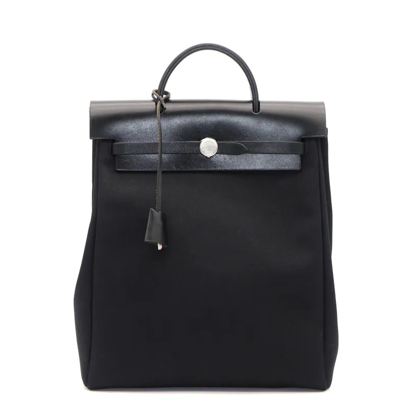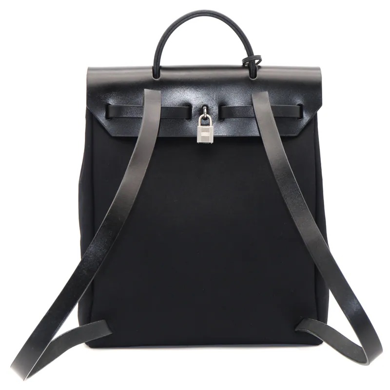 Ranking : AB Colour : Black X Silver Size : W30 X H36 X D10 cm Handle Drop : 7 cm Backpack Strap Length : 60 cm Material : Canvas X Leather Stamp : 1999 Year Remark : Canvas frayed, Leather cover minor scratched, metal parts minor frayed, Comes with dust bag