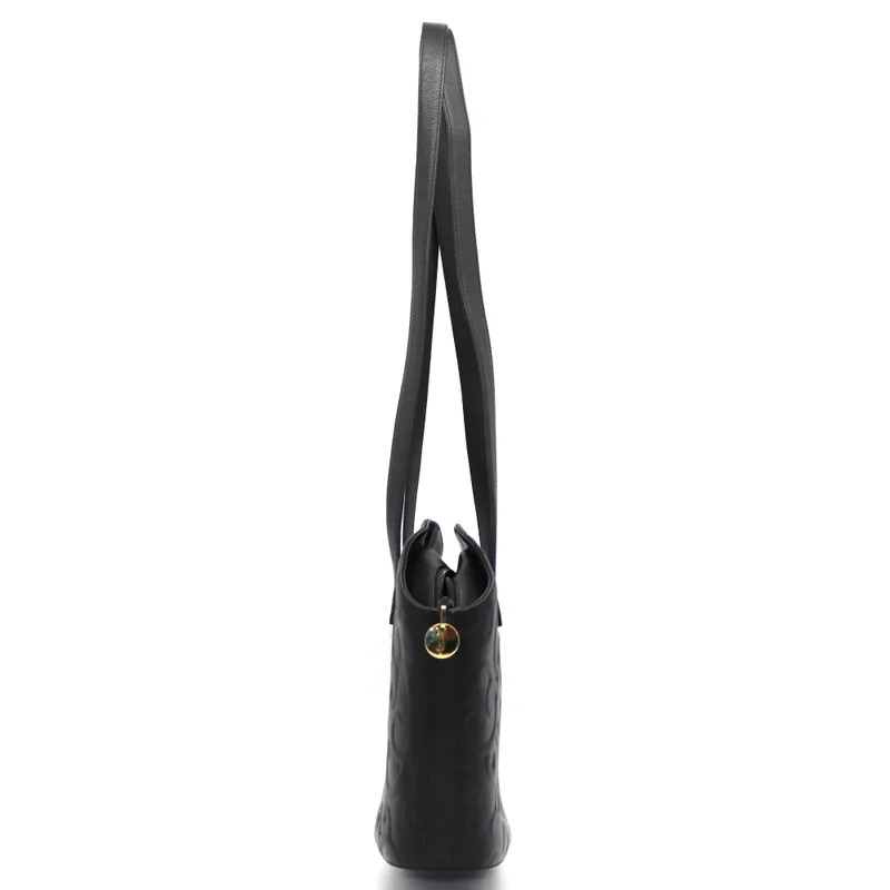 Ranking : AB Colour : Black X Gold Size : W22 X H24 X D9 cm Strap Drop : 38 cm Strap Length : 90 cm Material : Calfskin Remark : Outside minor frayed, bottom scratched
